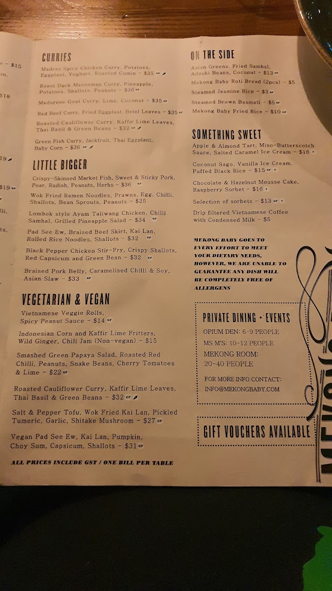 Guests rave about the impeccable service, where friendly staff ensure a speedy and enjoyable dining experience. Highlights include the green fish curry and delicious dumplings, each prepared with exceptional skill. Don’t forget to indulge in their exquisite desserts, like the almond tart paired with salted caramel ice cream, which leaves a lasting impression. Mekong Baby is not just a meal; it’s an experience worth savoring!
